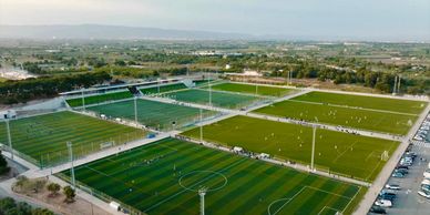 State of the art training facilities with 4 natural grass fields, 6 astro turf fields, 1 7v7 field and 2 beach football fields